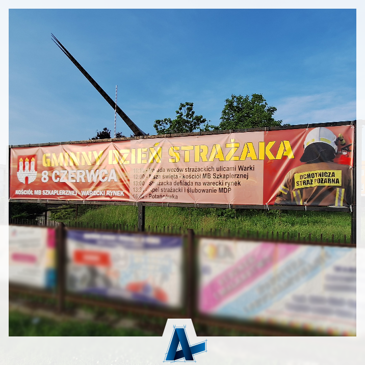 Druk banerów eventowych informujących o Gminnym Dniu strażaka w Warce i Potańcówce na wareckim rynku 👌😊