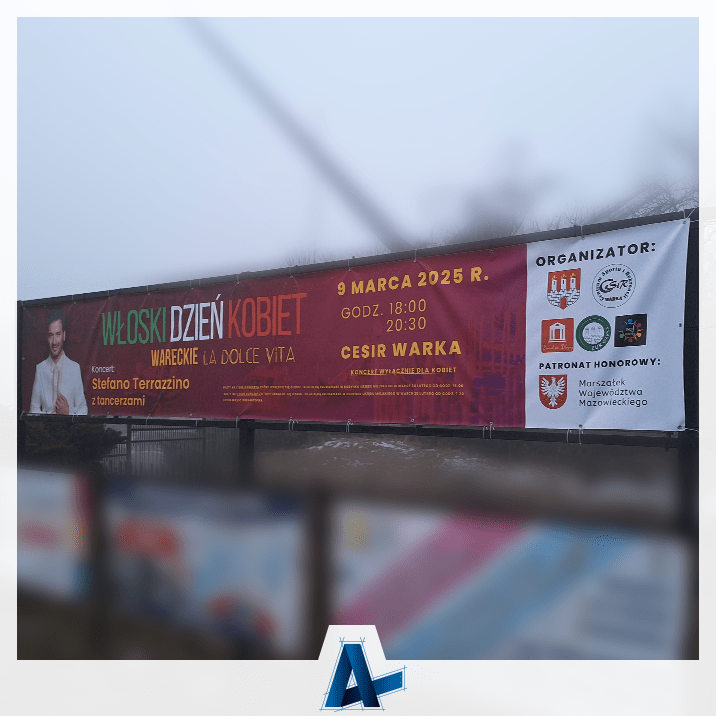 Oprócz widocznego na zdjęciu banera mieliśmy przyjemność wydrukować banery i zaproszenia na Włoski Dzień Kobiet w Warce 👌😊
