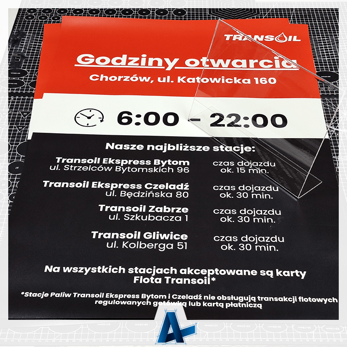 Ekspresowy druk plakatów i wykonanie stojaka na ulotkę z giętej pleksi dla stacji TRANSOIL 😊👌