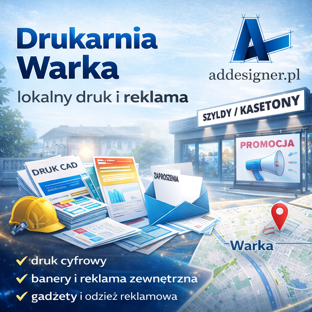Addesigner.pl to reklamowy dom produkcyjny w Warce, który obsługuje firmy oraz klientów indywidualnych z Warki i okolic.