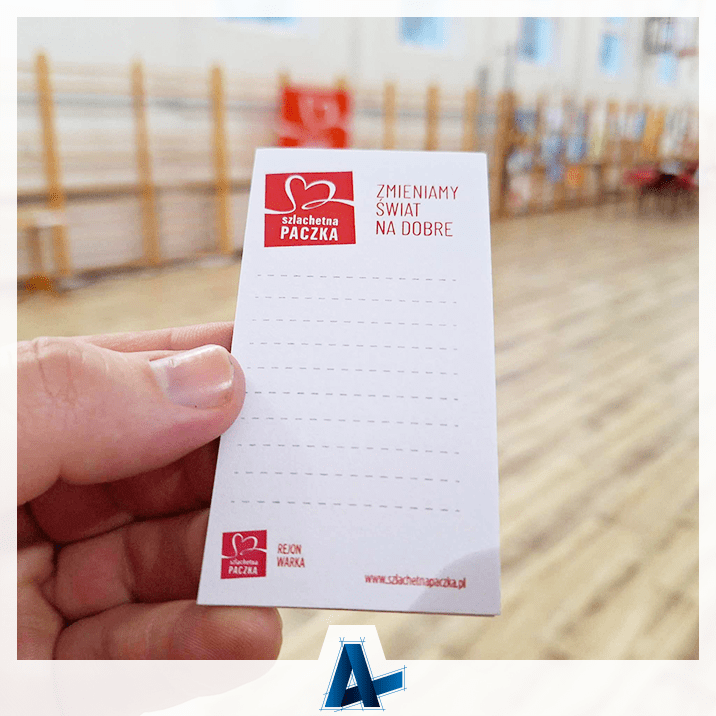 W tym roku mieliśmy przyjemność wykonać gadżety dla Szlachetnej Paczki w Warce, Przasnyszu, Dąbrowie, Otwocku, Łódź Polesie i Rudej – Chojny. A zrobiliśmy bluzy z haftem, torby bawełniane z logo, kalendarze jednodzielne, notesiki, dyplomy, małe stickery, naklejki na torby, zaproszenia, bombki, medale, breloczki, przypinki, banery, x-banery, grawerowane jabłka, wizytówki, druk ulotek, druk plakatów i identyfikatory.