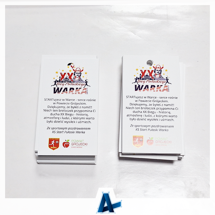 #KlubBiegacza #KSStartPułaskiWarka #TablicaDwustronnaPCV #BrelokiDrewniane #BrelokiZNadrukiem #Zawieszki #Zaproszenia #Dyplomy #XXBiegPułaskiego