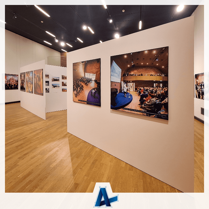 Nasza praca polegała na druku dostarczonego projektu, a następnie oklejeniu tablic pcv i oklejeniu ścianek w Centrum Edukacyjno-Muzealnym. Dzięki dobranej formie oklejenia ścianek w wariancie poziomym uzyskaliśmy efekt łączenia folii znacznie poniżej poziomy wzroku, co przekłada się na mniejszą widoczność.