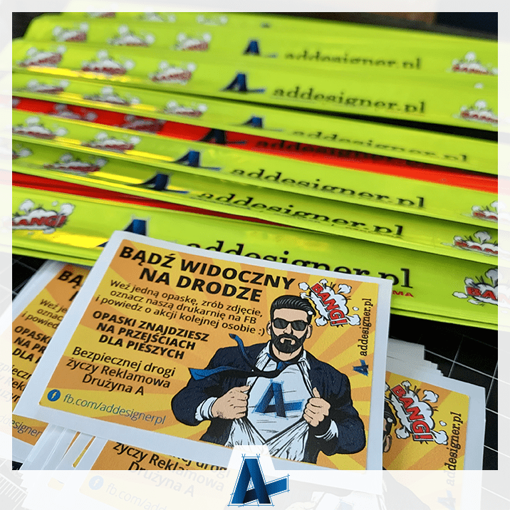 Drukarnia addesigner.pl oferuje różnorodne odblaskowe produkty, które możesz dopasować do swoich potrzeb. W naszej ofercie znajdziesz między innymi: